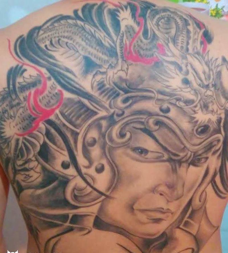 黑灰满背纹身图案