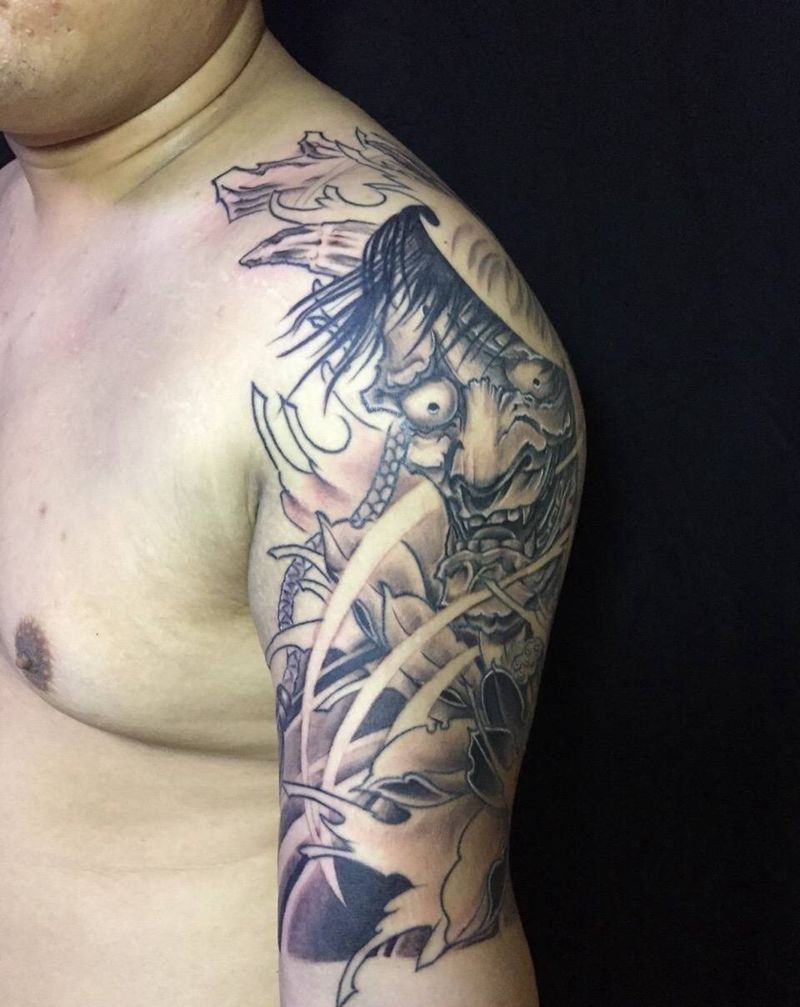 当前位置: 首页 >辽宁省营口市纹身店-80_MD_tattoo纹身图案>般若鲤鱼半甲一半纹身图片