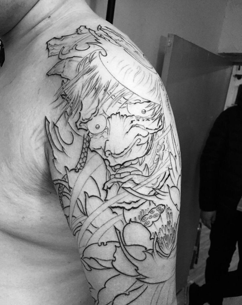当前位置: 首页 >辽宁省营口市纹身店-80_MD_tattoo纹身图案>般若鲤鱼半甲纹身图片
