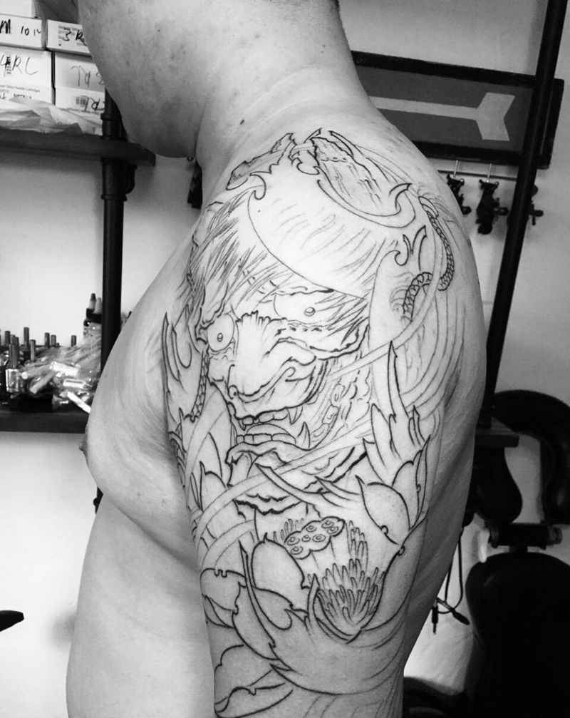 般若鲤鱼半甲纹身图片