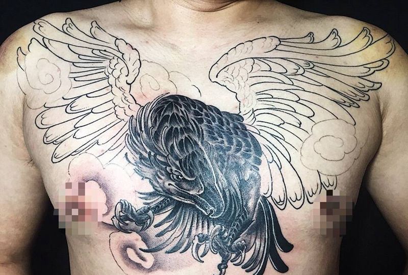 当前位置: 首页 >辽宁省营口市纹身店-80_MD_tattoo纹身图案>老鹰花胸未完纹身图片
