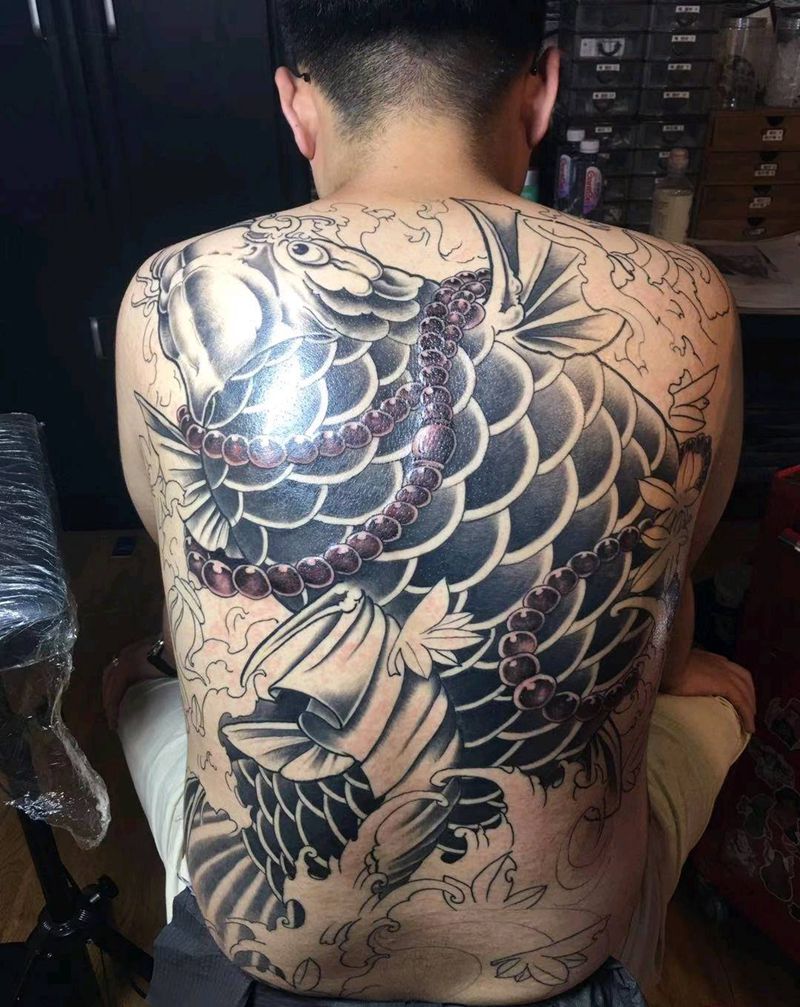 当前位置: 首页 >辽宁省丹东市纹身店-维·刺青纹身图案>满背鱼(待完成)纹身图片_背部新传统纹身图案