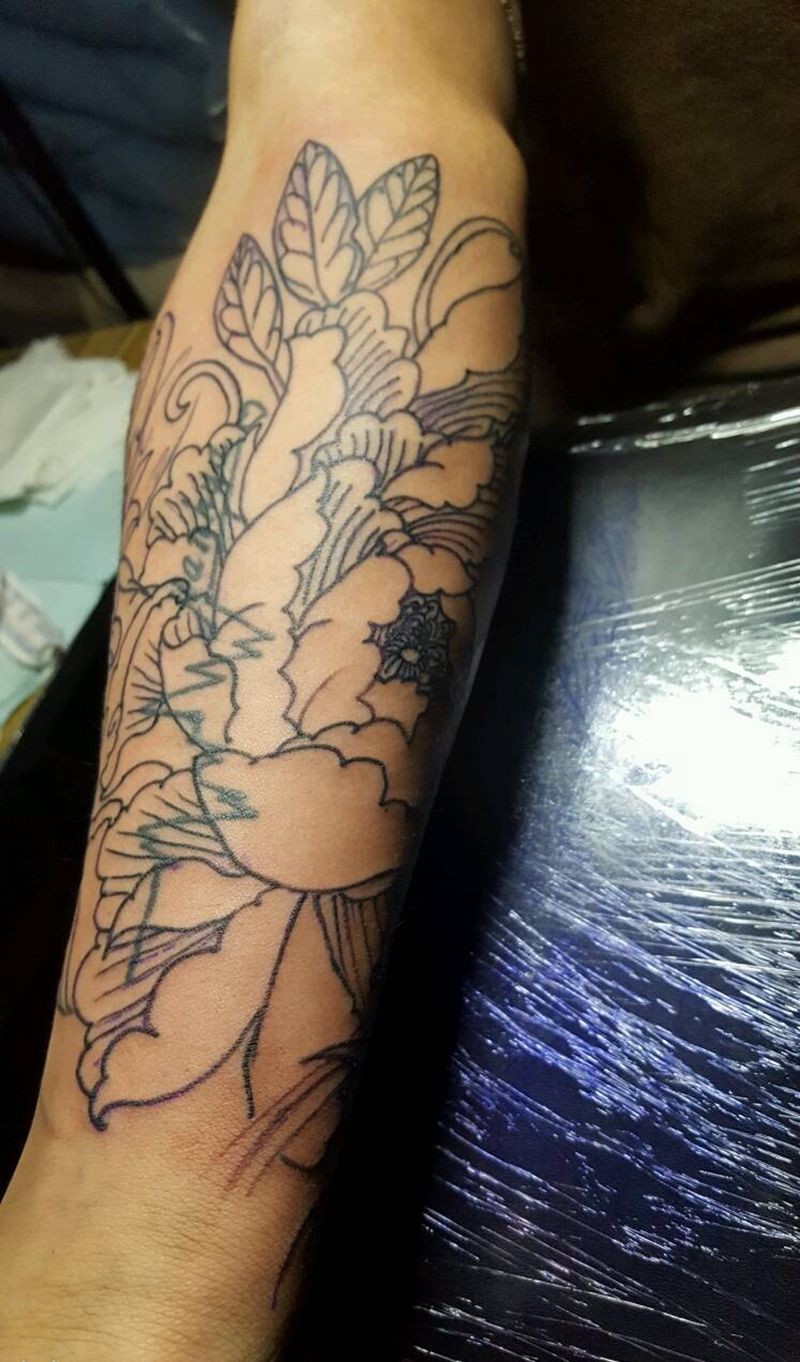 般若+遮盖待完成纹身图片