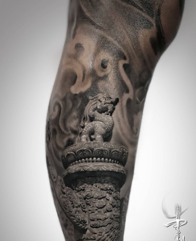 当前位置: 首页 >辽宁省营口市纹身店-曹宁刺青 纹身图案>华表纹身图片_腿部欧美写实石雕纹身图案
