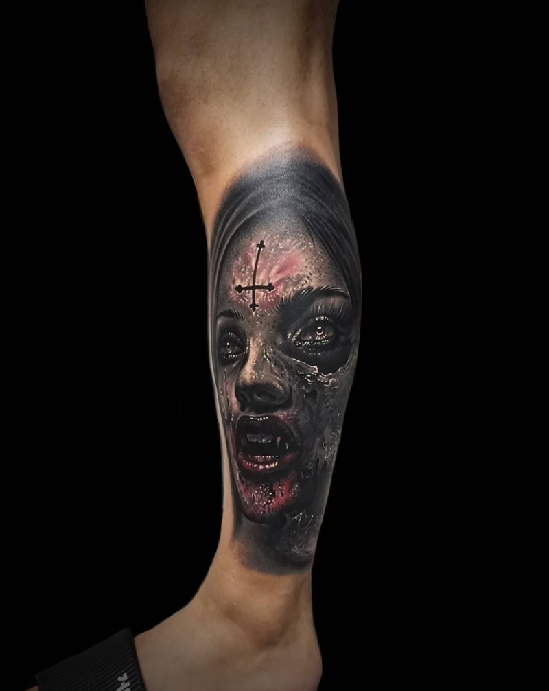 .纹身图片_腿部欧美写实骷髅纹身图案