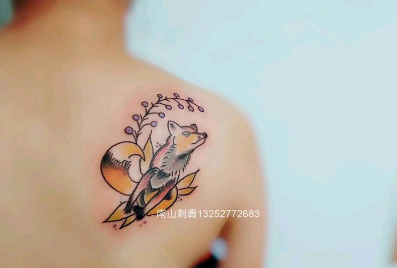 小狐狸纹身图片_背部手臂Old SchoolNew School纹身图案