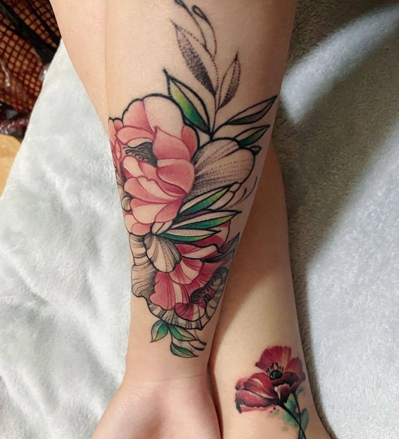 遮盖纹身图片_手部腿部点刺水彩纹身图案