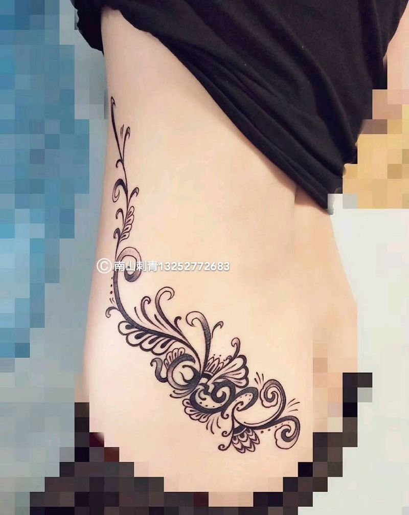 修改作品纹身图片_腹部腰部图腾几何纹身图案