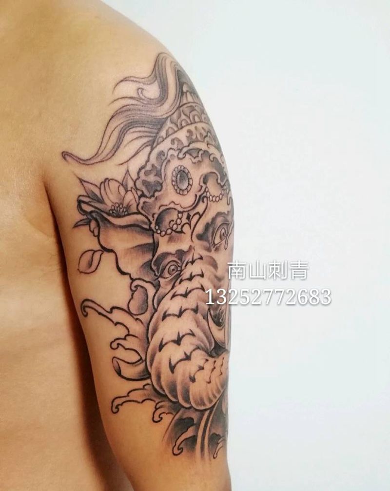 当前位置: 首页 >辽宁省朝阳市纹身店-南山刺青工作室纹身图案>象神纹身图片_肩部手臂新传统老传统纹身图案