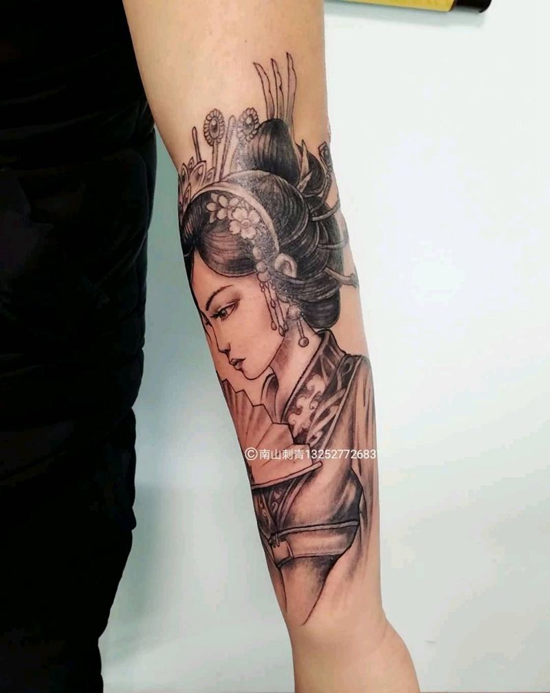 美艺妓纹身图片_手部手臂老传统新传统纹身图案