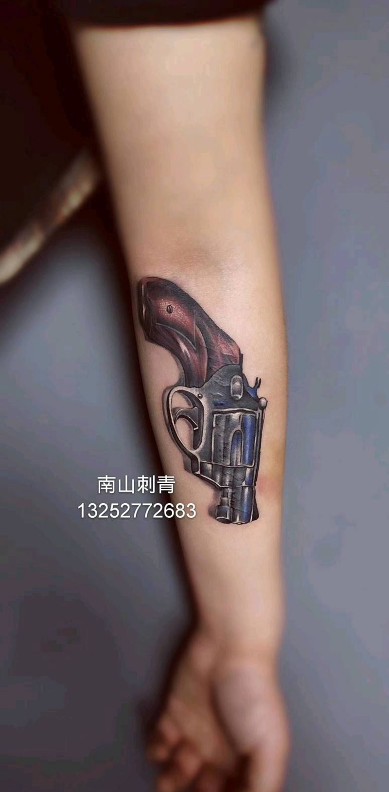 revolver遮盖纹身图片_手部手臂Old SchoolNew School纹身图案