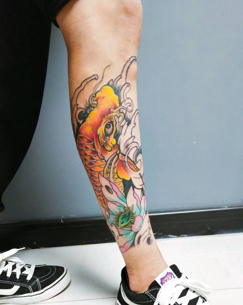 大鲤鱼纹身图片_腿部手部老传统新传统纹身图案