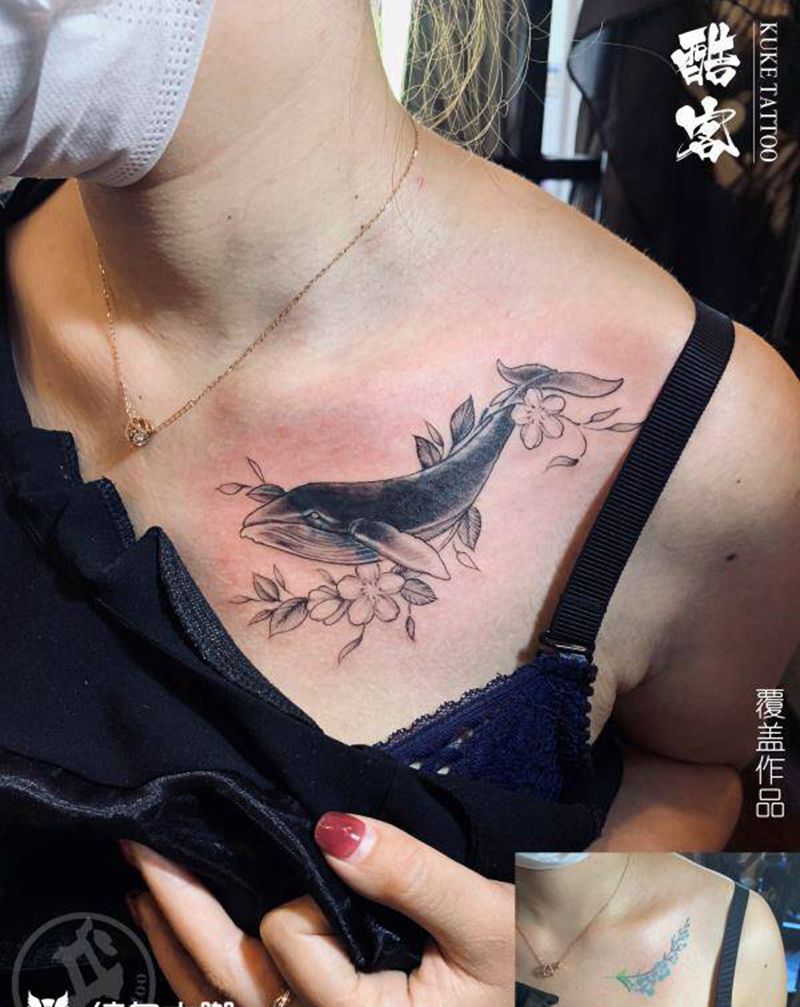 • 女性大花胸纹身_43张霸气漂亮的女性大花胸纹身图案作品