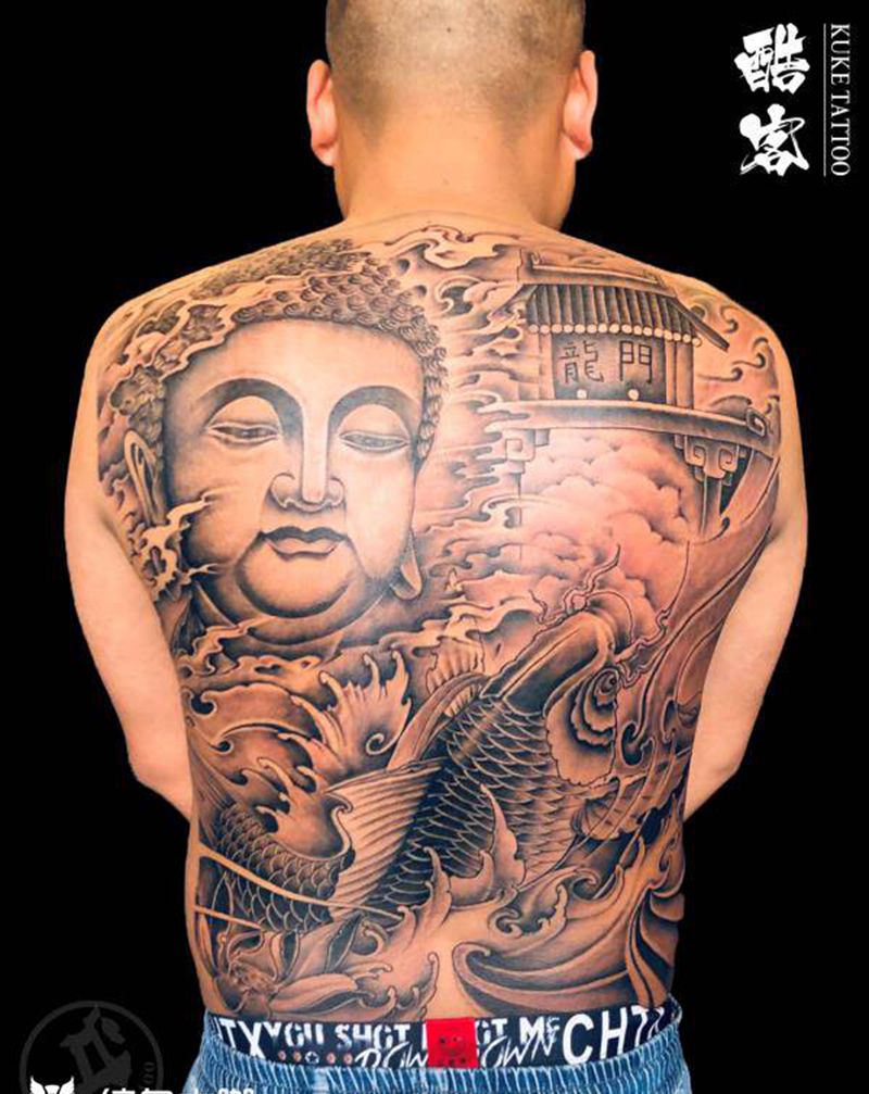 • 黑灰满背纹身图案