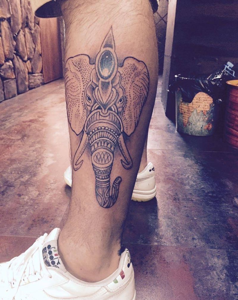 • T包小腿吹火男+阿多福纹身图片_腿部老传统新传统吹火男阿