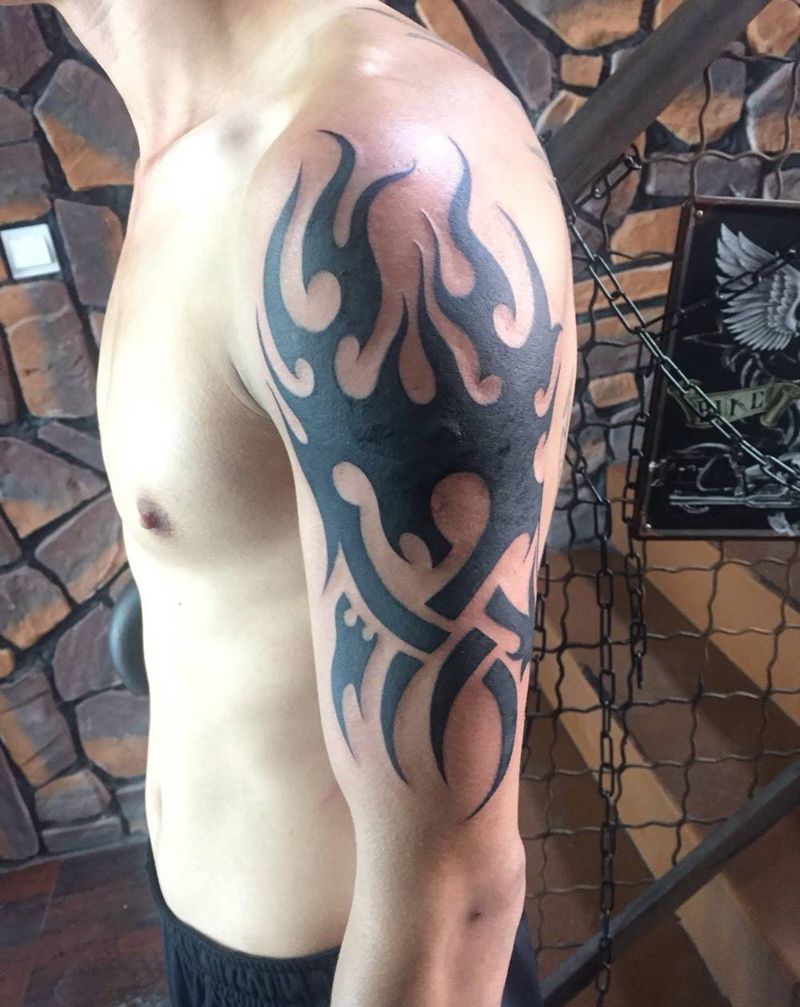 • 纹身吧推荐的披肩图腾半胛纹身图案作品展示