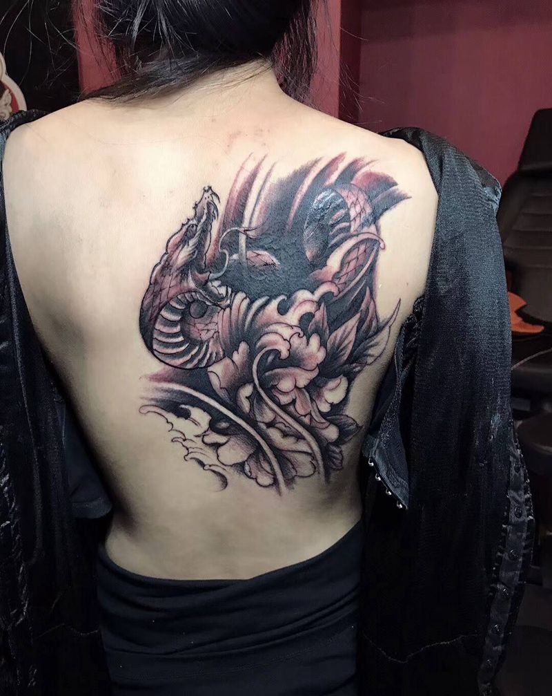 • 黑灰满背纹身图案