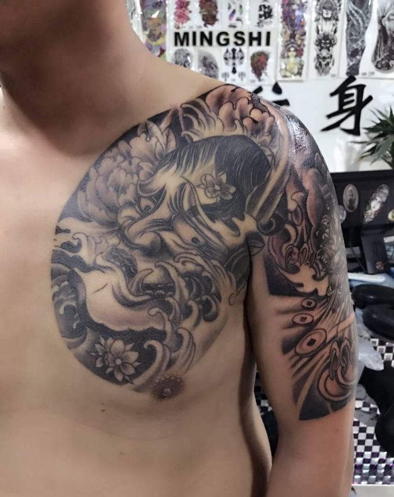 般若貔貅半甲纹身图片