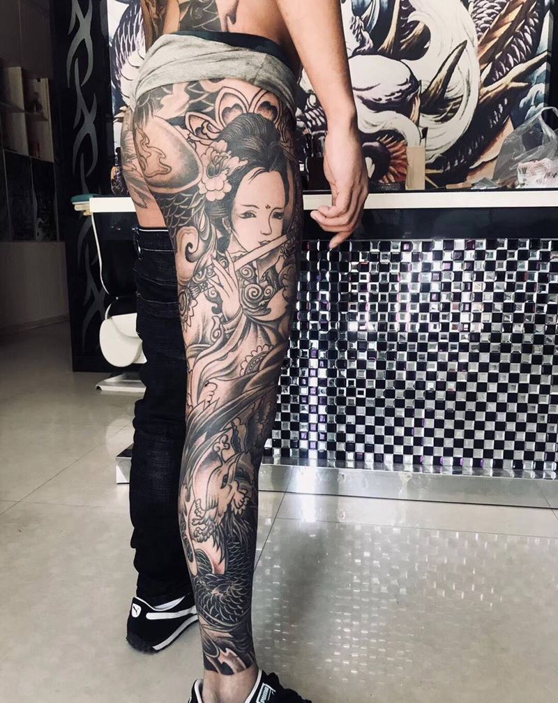 当前位置: 首页 >辽宁省朝阳市纹身店-名仕纹身会馆纹身图案>满背麒麟艺妓花腿纹身图片