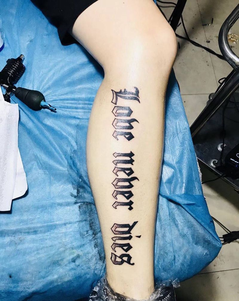 当前位置: 首页 >辽宁省朝阳市纹身店-名仕纹身会馆纹身图案>小腿拼接纹身图片