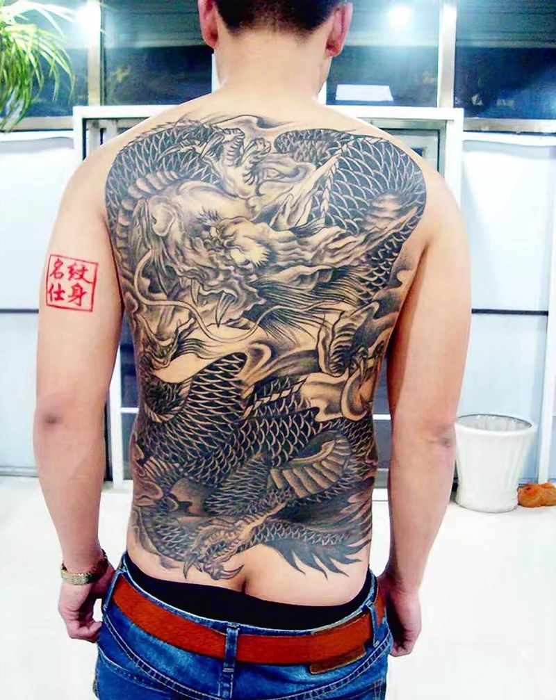 满背龙纹身图片