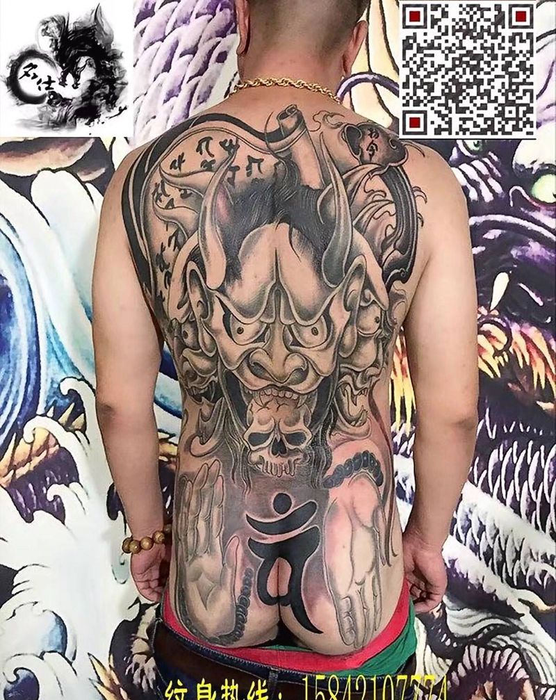 黑灰满背纹身图案