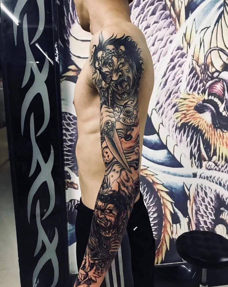 当前位置: 首页 >辽宁省朝阳市纹身店-名仕纹身会馆纹身图案>大黑天不动明王花臂纹身图片