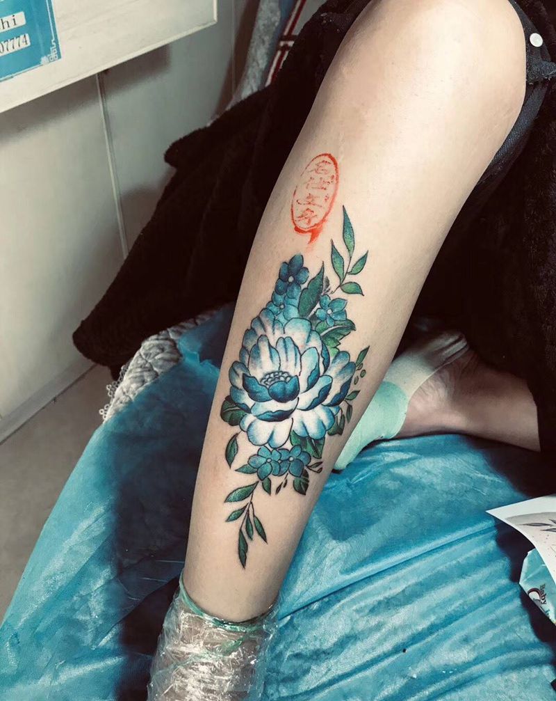 • T网红王老大花腿龙纹身图片_腿部新传统纹身图案