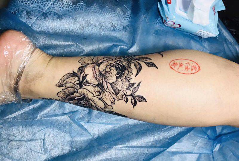 素花纹身图片_腿部纹身图案