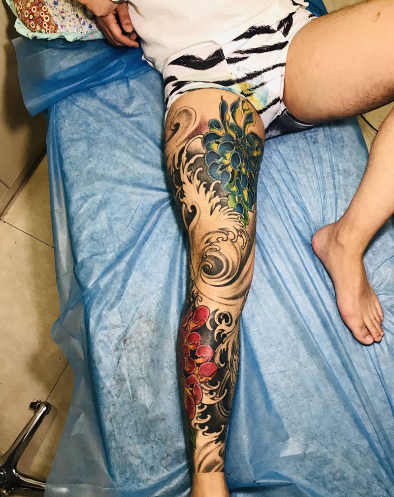 当前位置: 首页 >辽宁省朝阳市纹身店-名仕纹身会馆纹身图案>花腿纹身图片_腿部纹身图案