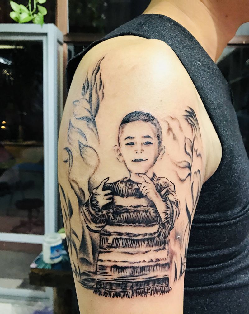 当前位置: 首页 >辽宁省朝阳市纹身店-名仕纹身会馆纹身图案>父子情深纹身图片_手臂纹身图案