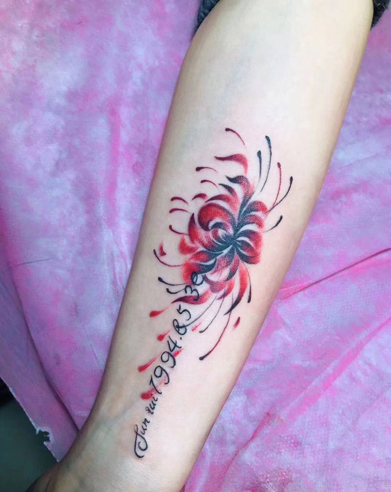 当前位置: 首页 >辽宁省朝阳市纹身店-名仕纹身会馆纹身图案>彼岸花纹身图片_手臂纹身图案