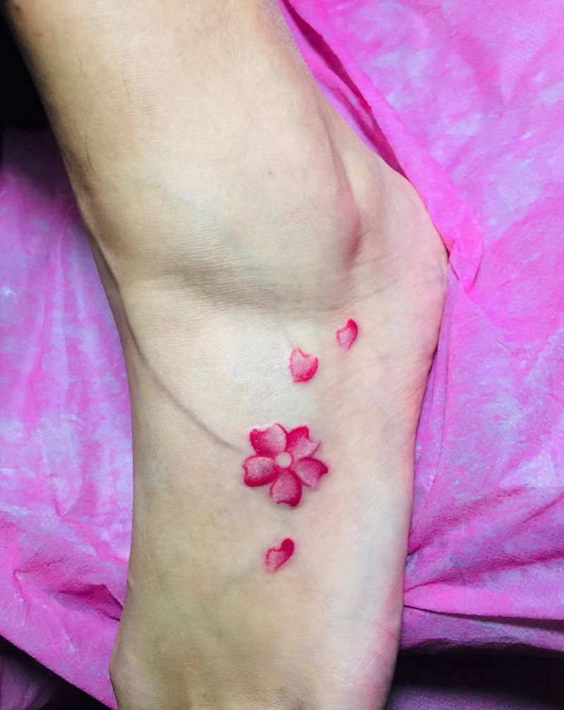 樱花纹身图片_脚部纹身图案