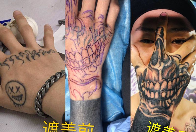 当前位置: 首页 >辽宁省朝阳市纹身店-名仕纹身会馆纹身图案>手背骷髅遮盖纹身图片_手部纹身图案