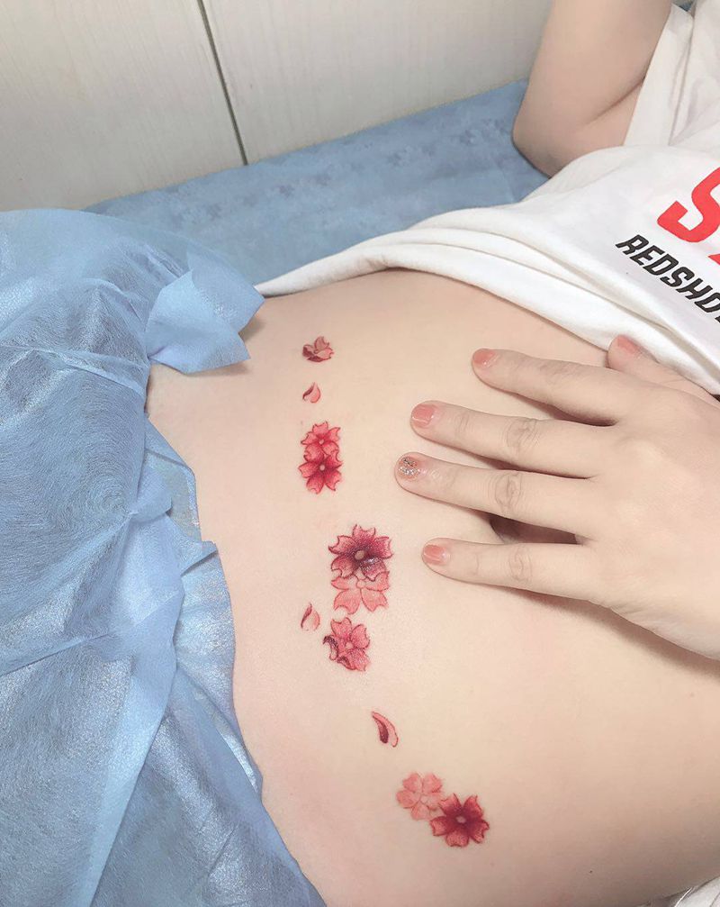 遮盖微创手术刀口纹身图片_腹部纹身图案