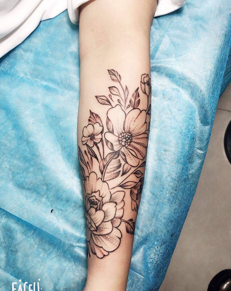 素花纹身图片_手臂纹身图案