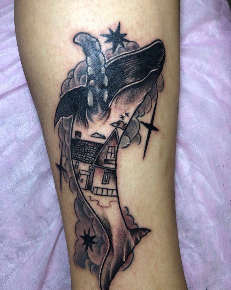 当前位置: 首页 >辽宁省朝阳市纹身店-名仕纹身会馆纹身图案>鲸鱼纹身图片_腿部纹身图案