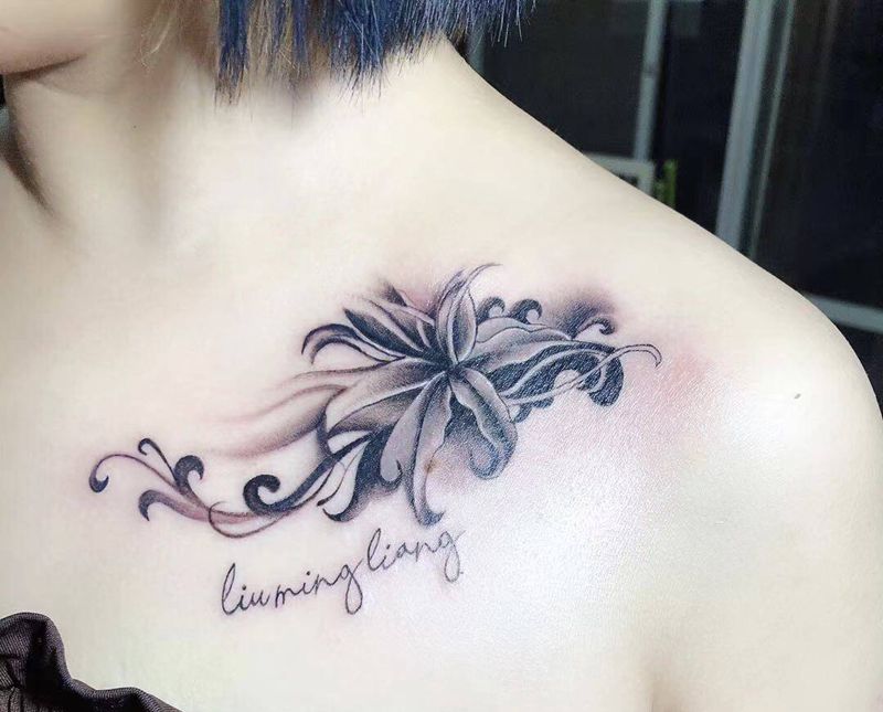 彼岸花纹身图片_胸部纹身图案