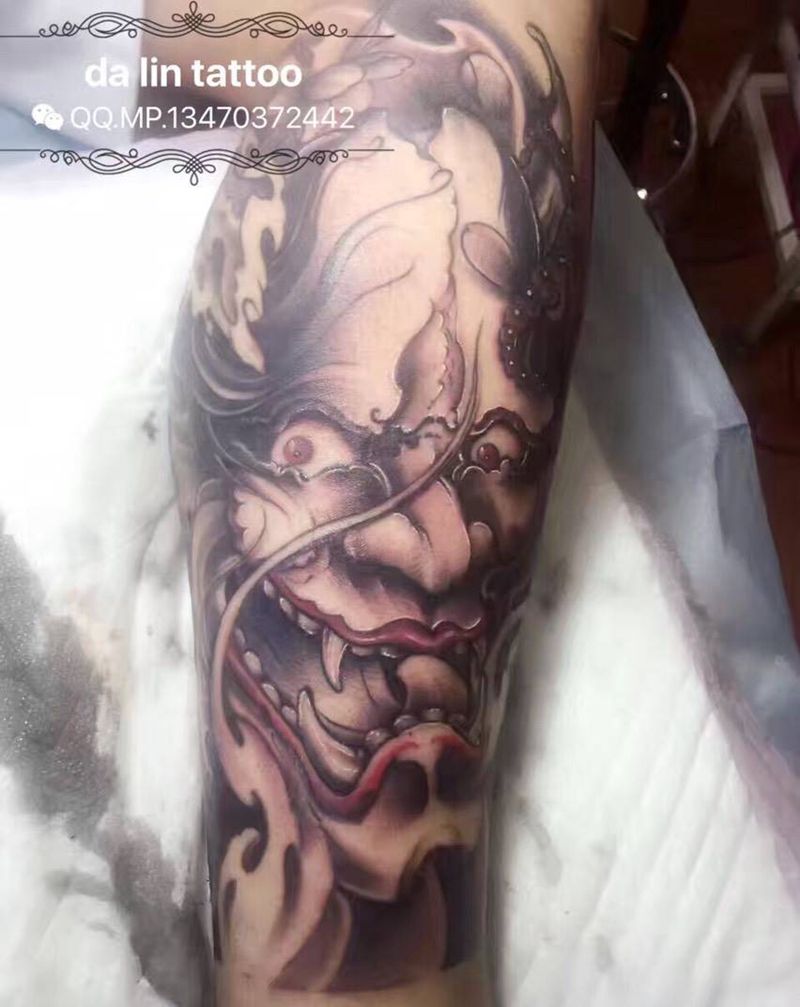 • T网红王老大花腿龙纹身图片_腿部新传统纹身图案