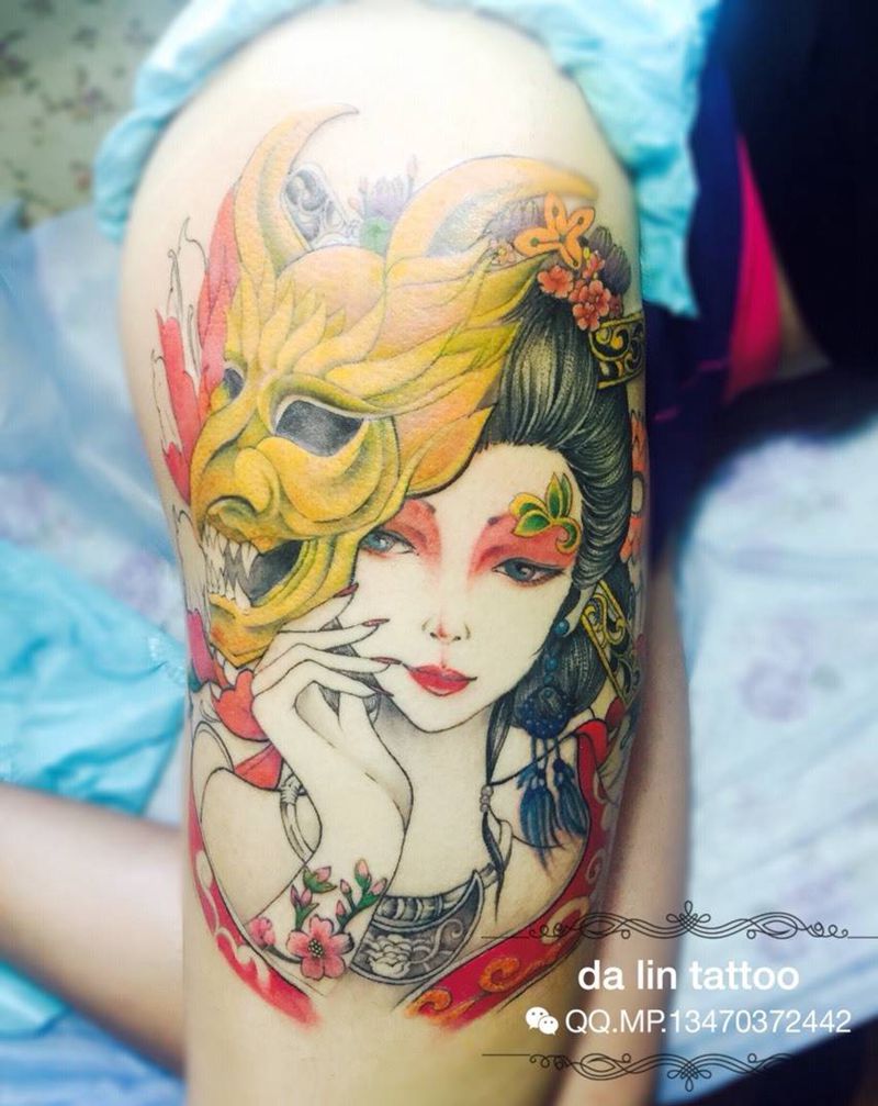 • T网红王老大花腿龙纹身图片_腿部新传统纹身图案