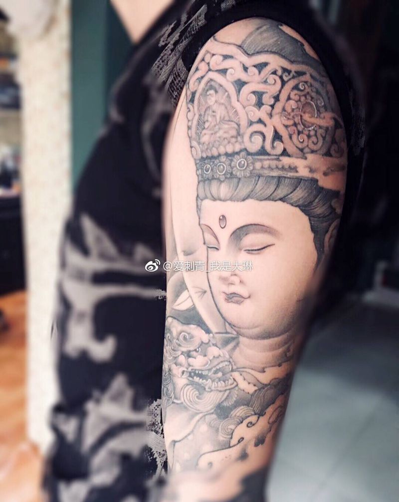 当前位置: 首页 >辽宁省阜新市纹身店-爱刺青纹身图案>文殊菩萨花臂未完纹身图片