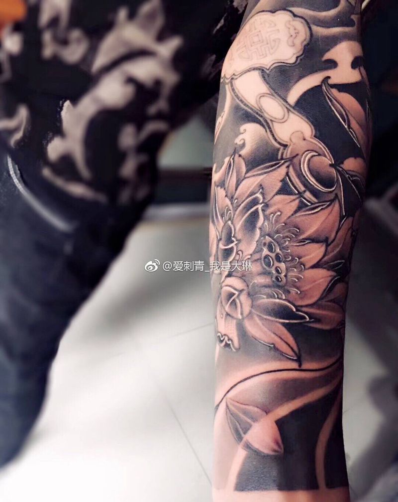 一组15张莲花纹身手