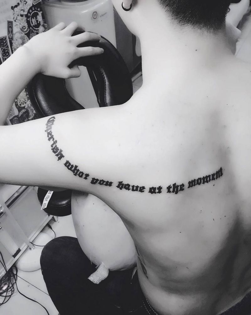 当前位置: 首页 >辽宁省葫芦岛市纹身店-2347工作室大国刺青纹身图案>且行且珍惜纹身图片