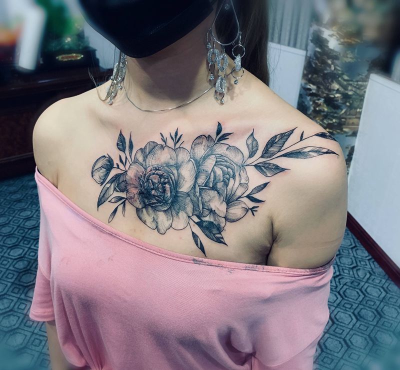 • 女性大花胸纹身_43张霸气漂亮的女性大花胸纹身图案作品