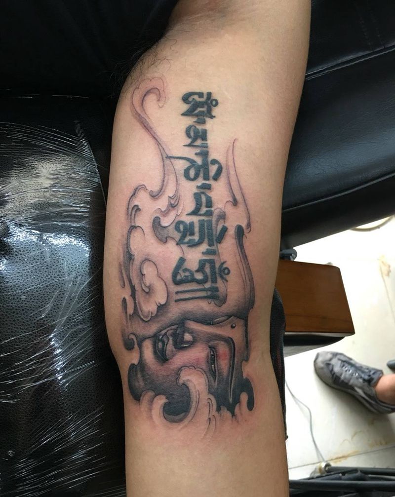 当前位置: 首页 >辽宁省葫芦岛市纹身店-艾加纹身工作室纹身图案>六字真言纹身图片