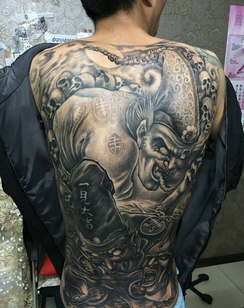 当前位置: 首页 >辽宁省葫芦岛市纹身店-艾加纹身工作室纹身图案>黑白无常后背纹身图片_背部成品人物纹身图案