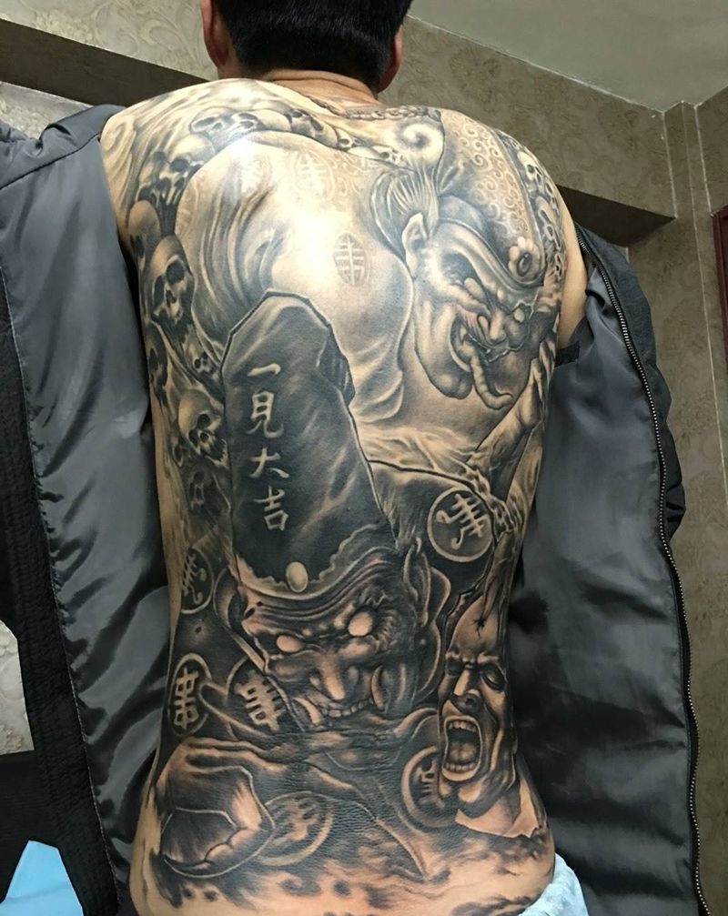 黑白无常后背纹身图片_背部成品人物纹身图案