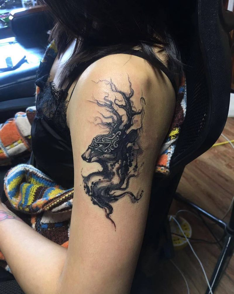 当前位置: 首页 >辽宁省葫芦岛市纹身店-艾加纹身工作室纹身图案>水墨鹿纹身图片