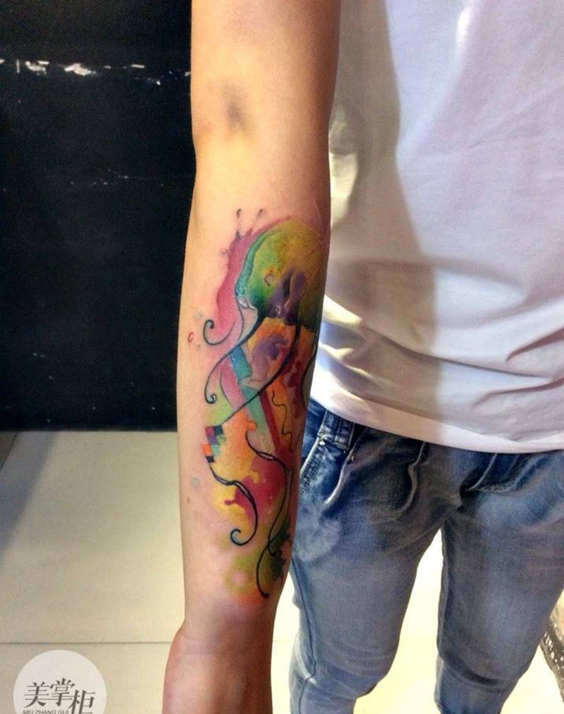 当前位置: 首页 >辽宁省葫芦岛市纹身店-二刚纹身纹身图案>涂鸦水母纹身图片_清新欧美动物手臂school纹身图案