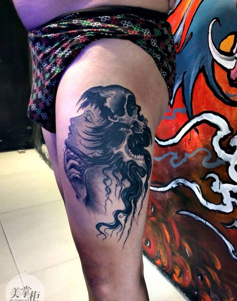 • T网红王老大花腿龙纹身图片_腿部新传统纹身图案
